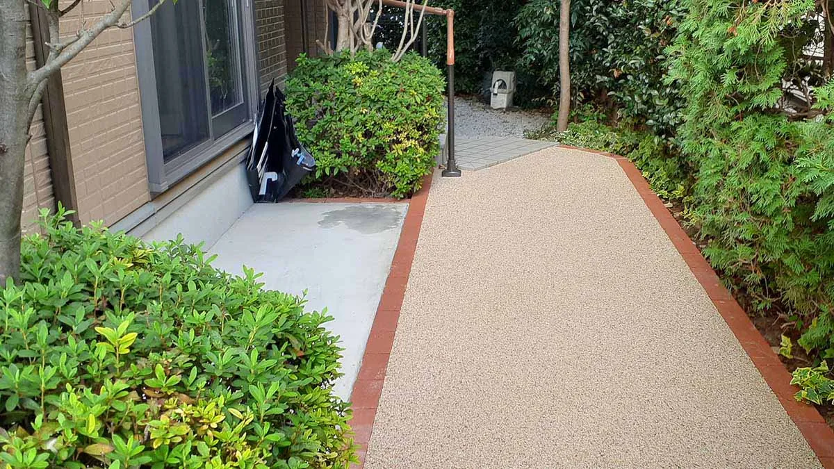 ・アプローチ工事:洗い出しコンクリート(グレー)