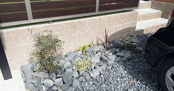 カーポート横には、割栗石と植栽でワンポイントお洒落に仕上げました!